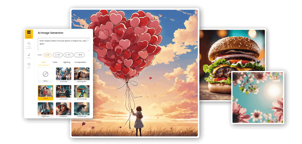 Use the image generator AI to convert your business ideas into reality. Our platform empowers you to create designs online for free, perfect for elevating your marketing efforts.